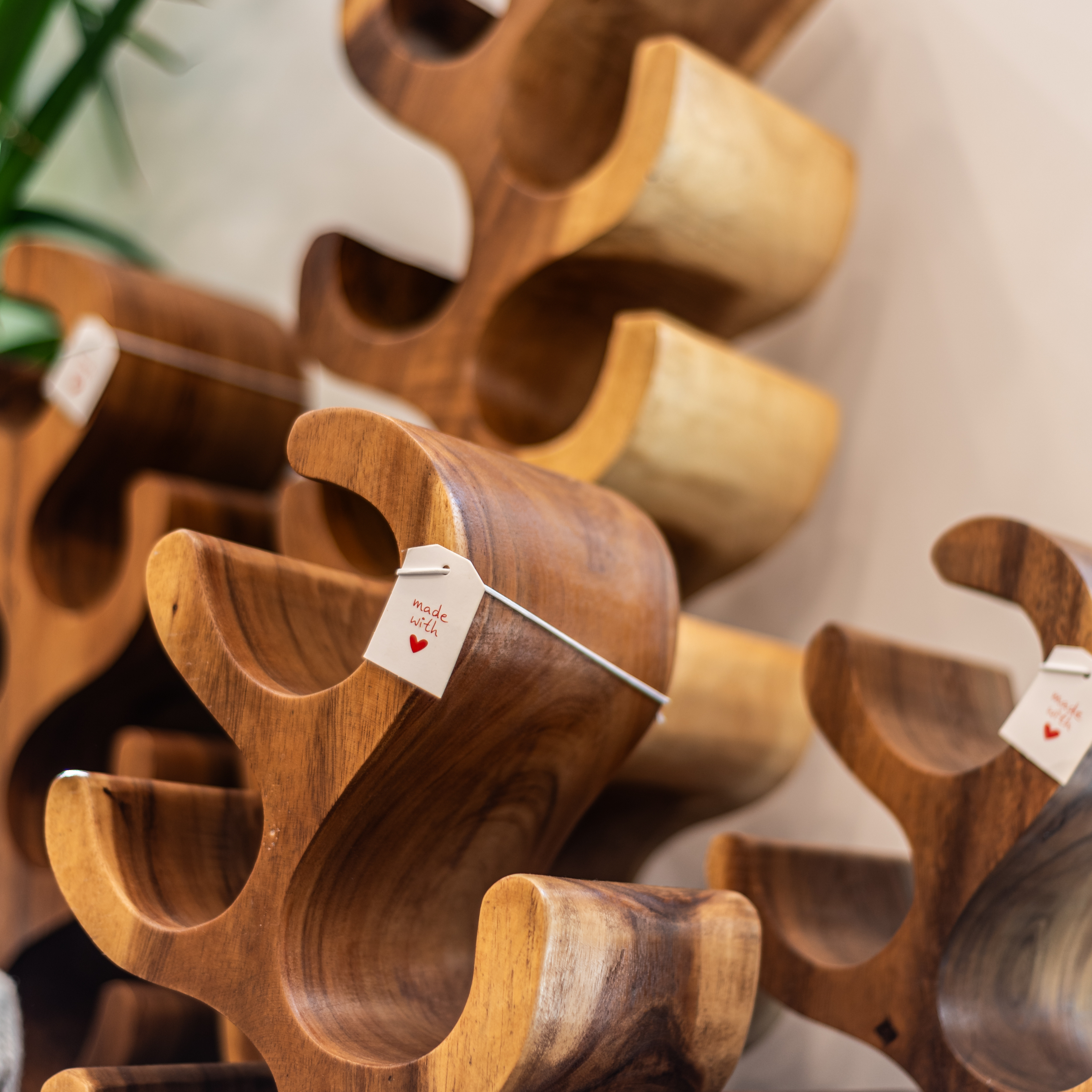 FlaschenhalterIn Südostasien gibt es einen prächtigen Baum, der durch seine Schönheit und Vielseitigkeit die Aufmerksamkeit vieler auf sich gezogen hat: den Regenbaum. Dieses Holz wird allgemein als Suar-Holz bezeichnet und ist zu einem beliebten Material für die Herstellung von Möbeln, dekorativen Schnitzereien und Skulpturen geworden.