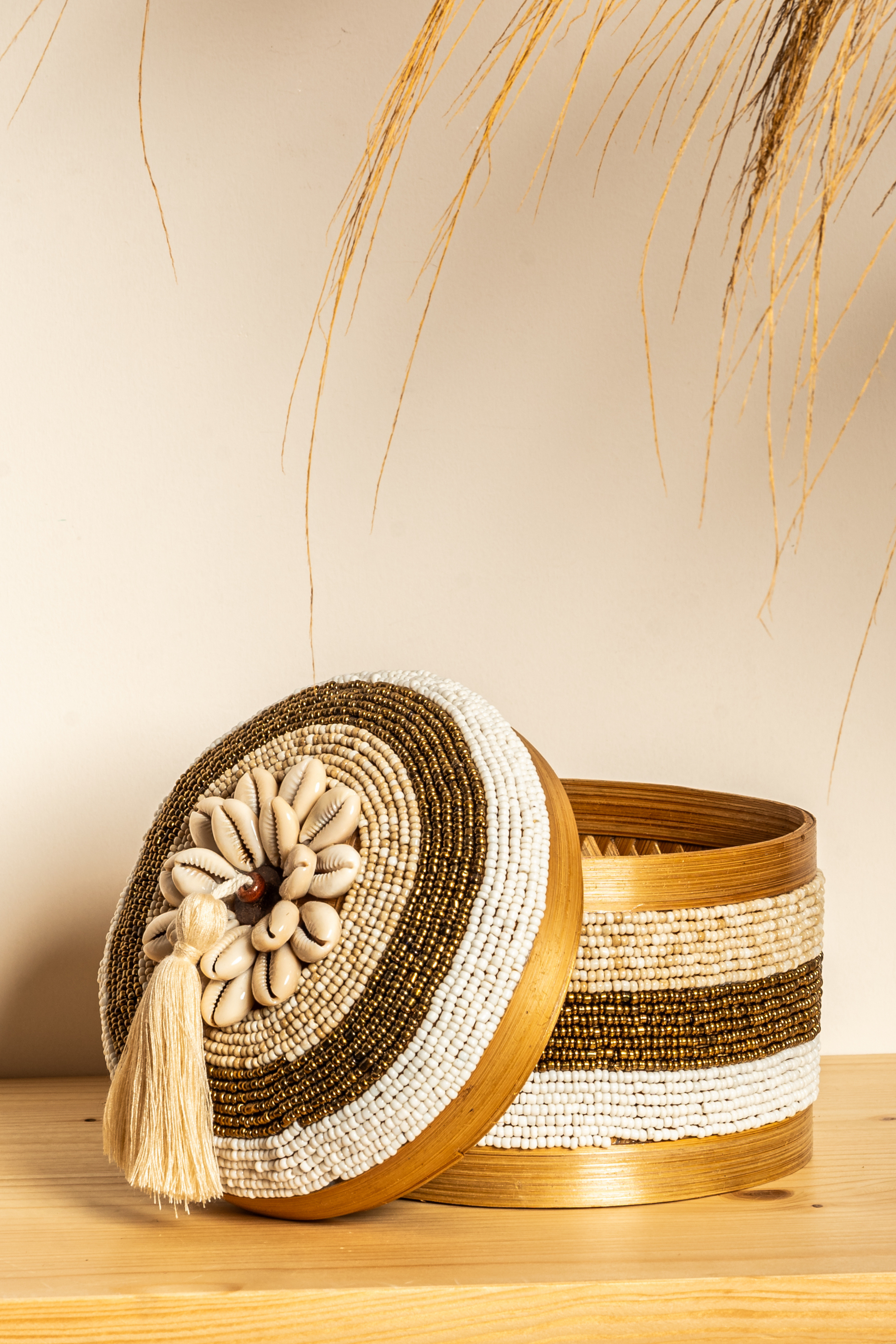 Diese hübsche Schachtel kann als Behälter oder einfach als Dekorationsartikel verwendet werden und bringt mit Sicherheit einen böhmischen Touch in Ihr Zuhause.