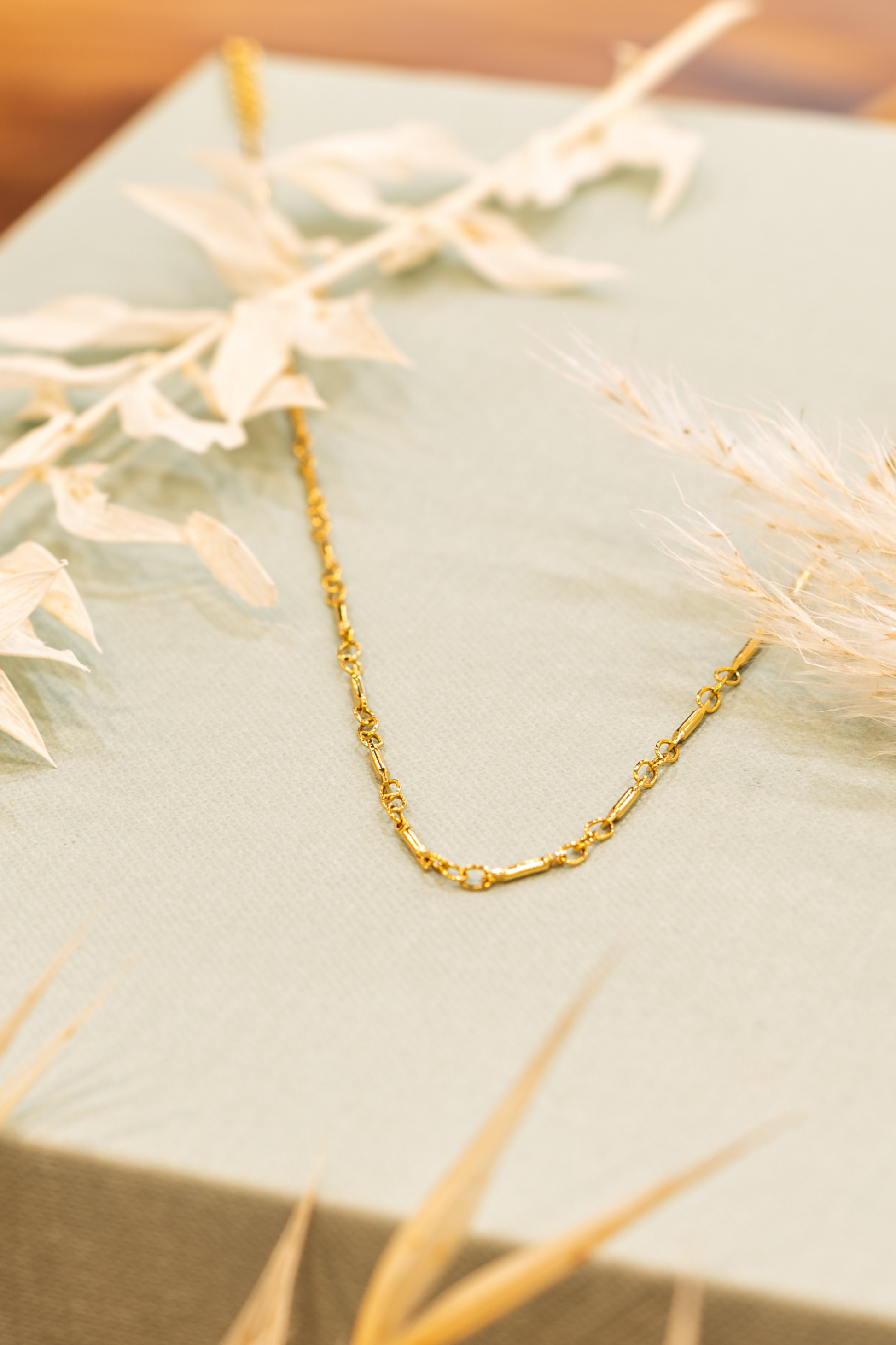 Gold plated brass necklace. Hand made.